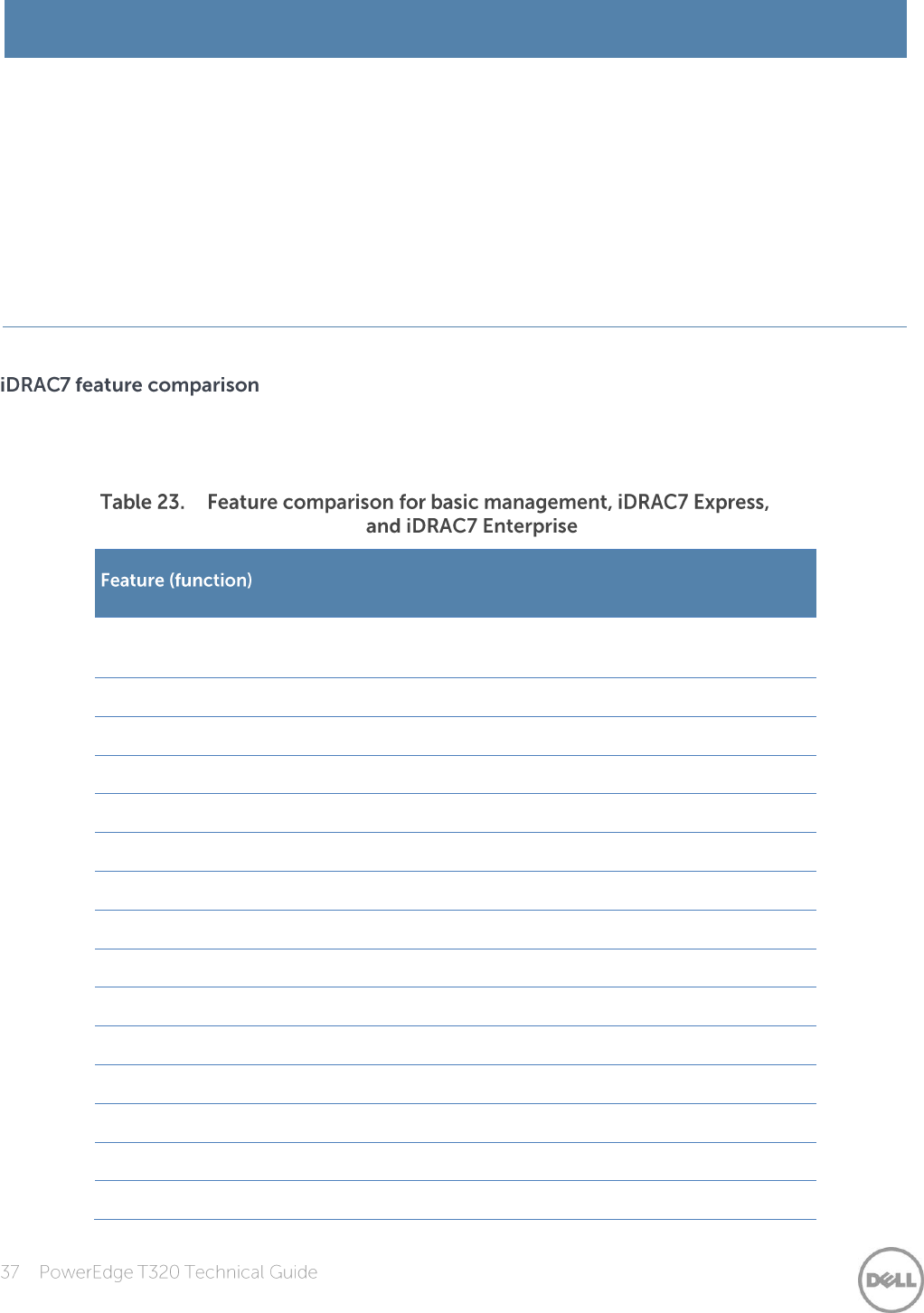 Express, and iDRAC7 Enterprise is shown in Table 23.